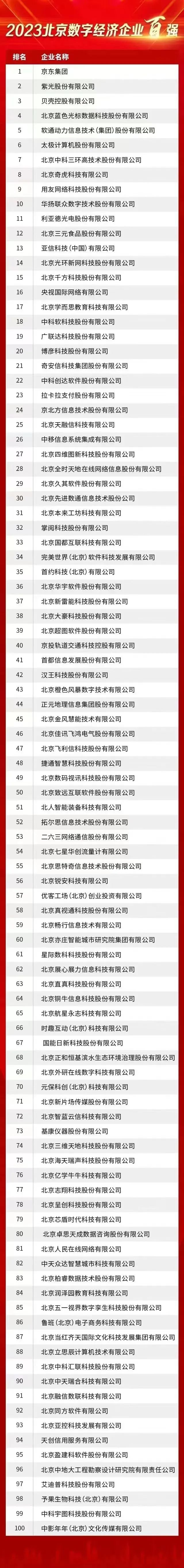 此次评选以参评公司2022年企业经营指标为入围标准,结合企业创新能力、经济贡献实力,评审涉及企业研发强度、拥有发明专利数量、软件著作权数量以及年度收入利润率等多个层面。经过多轮专家评定的方式,而产生最终入榜名单。榜单旨在反映北京头部数字企业的群体分布、经营状况、发展趋势,助力北京企业进一步提升在国内乃至国际市场的竞争力,推动政府经济部门支持企业不断做强做大,为推动首都经济高质量发展发挥积极作用。